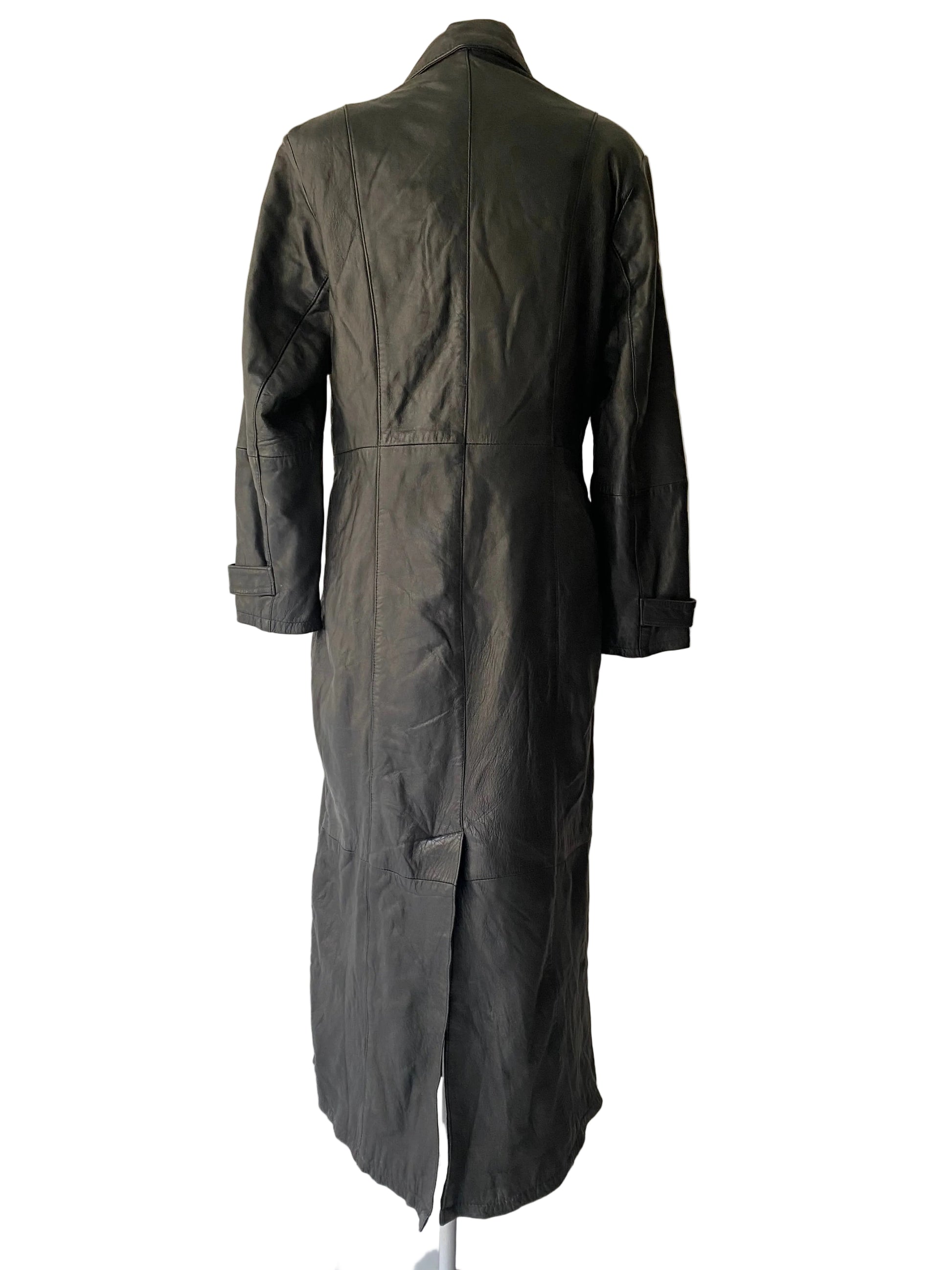 Vintage leather long black coat