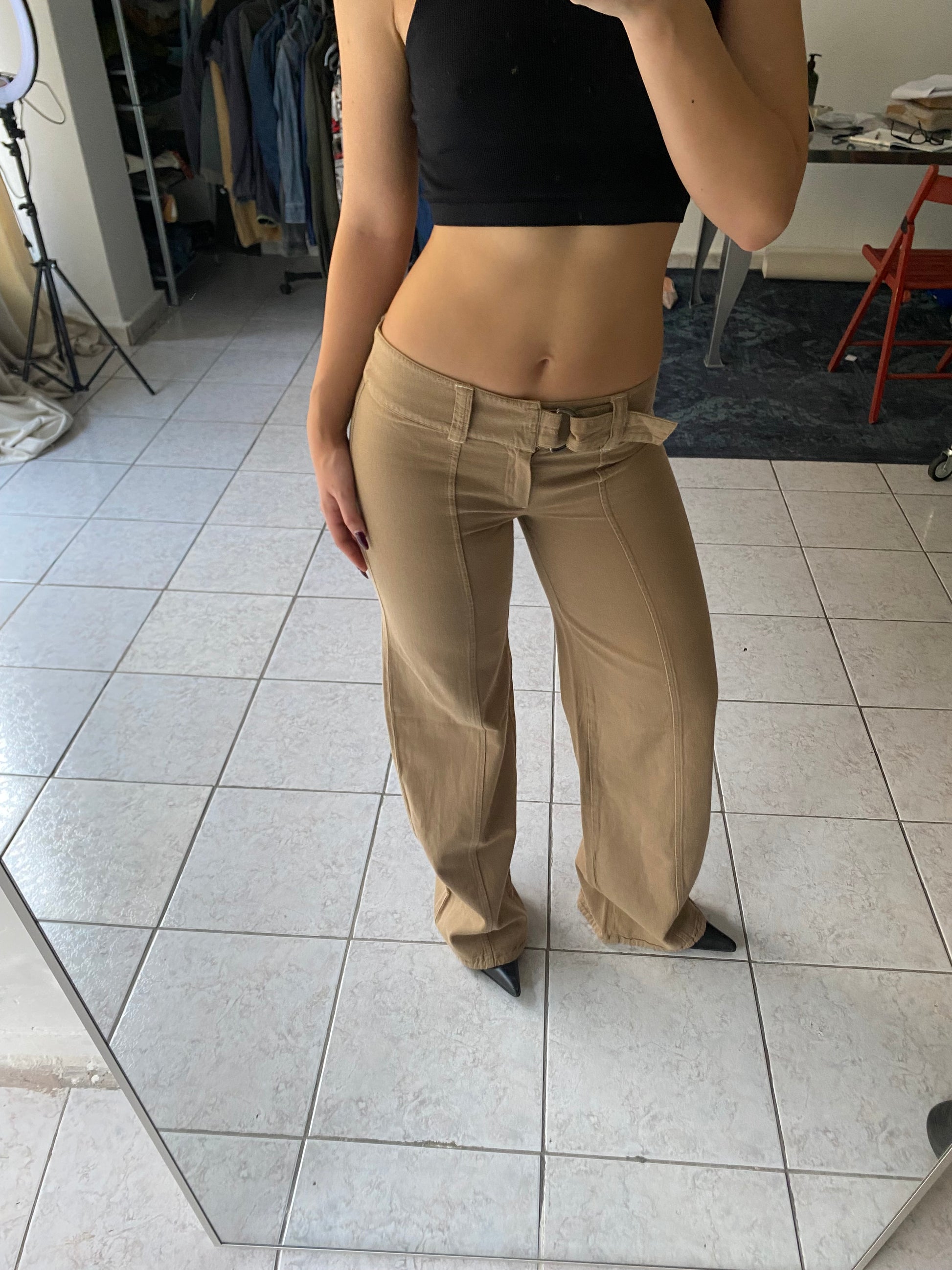 Wide leg beige pants